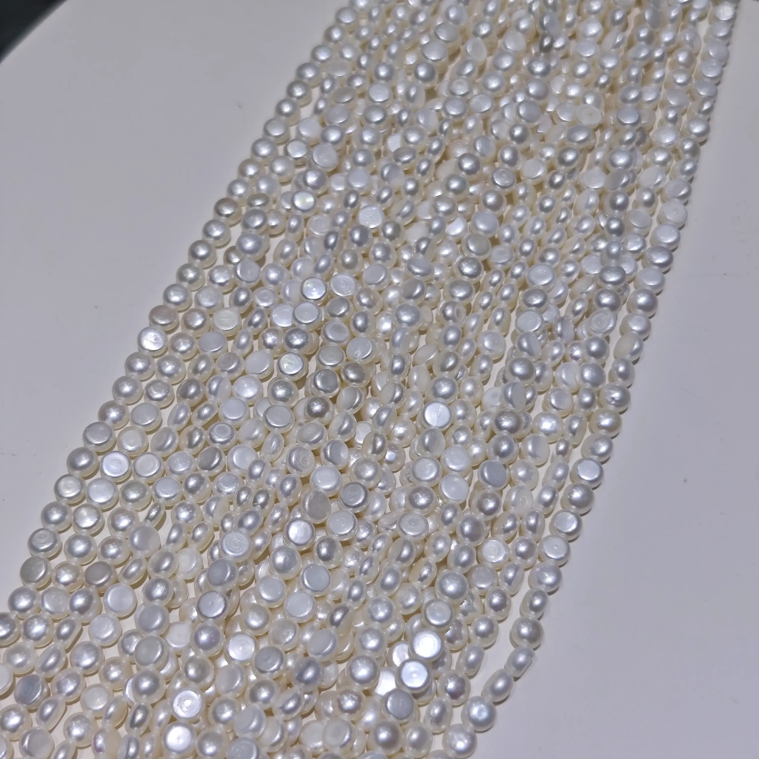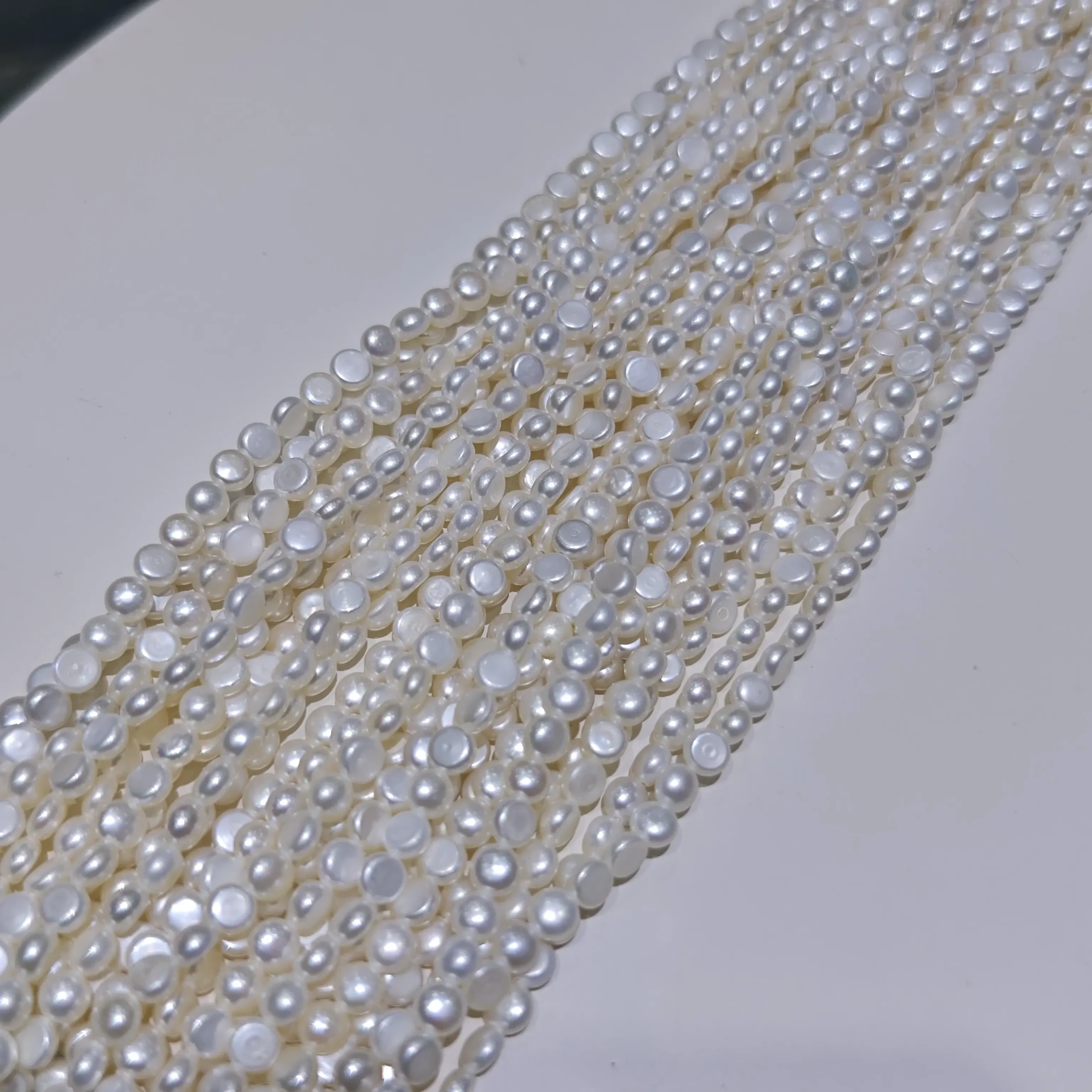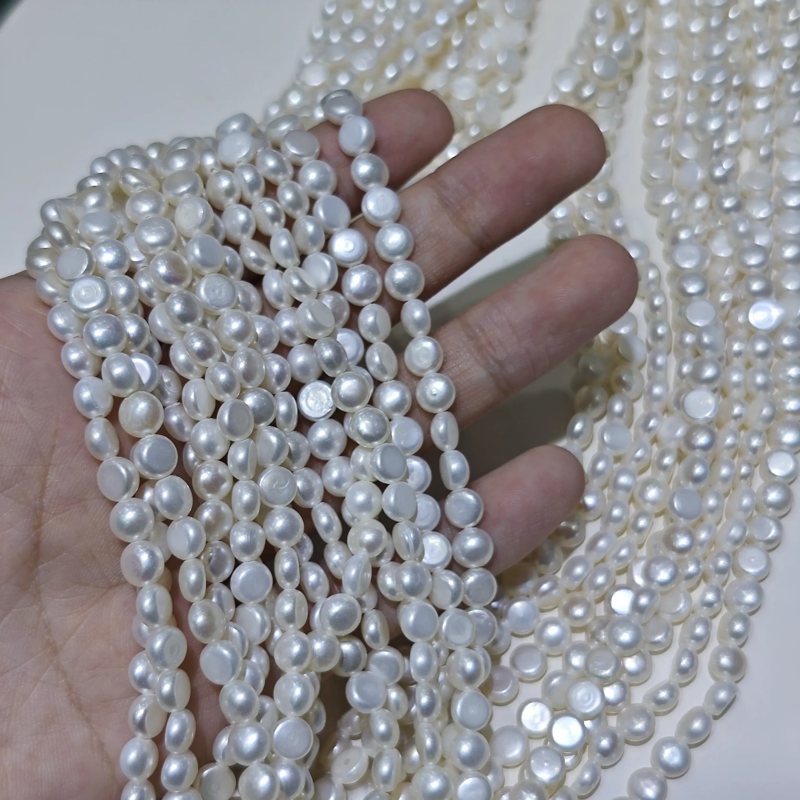 خيط لؤلؤ طبيعي بحجم 5-6 مم بشكل زر مع ثقب جانبي، من نوع AAA، بطول 16 إنش، بالجملة