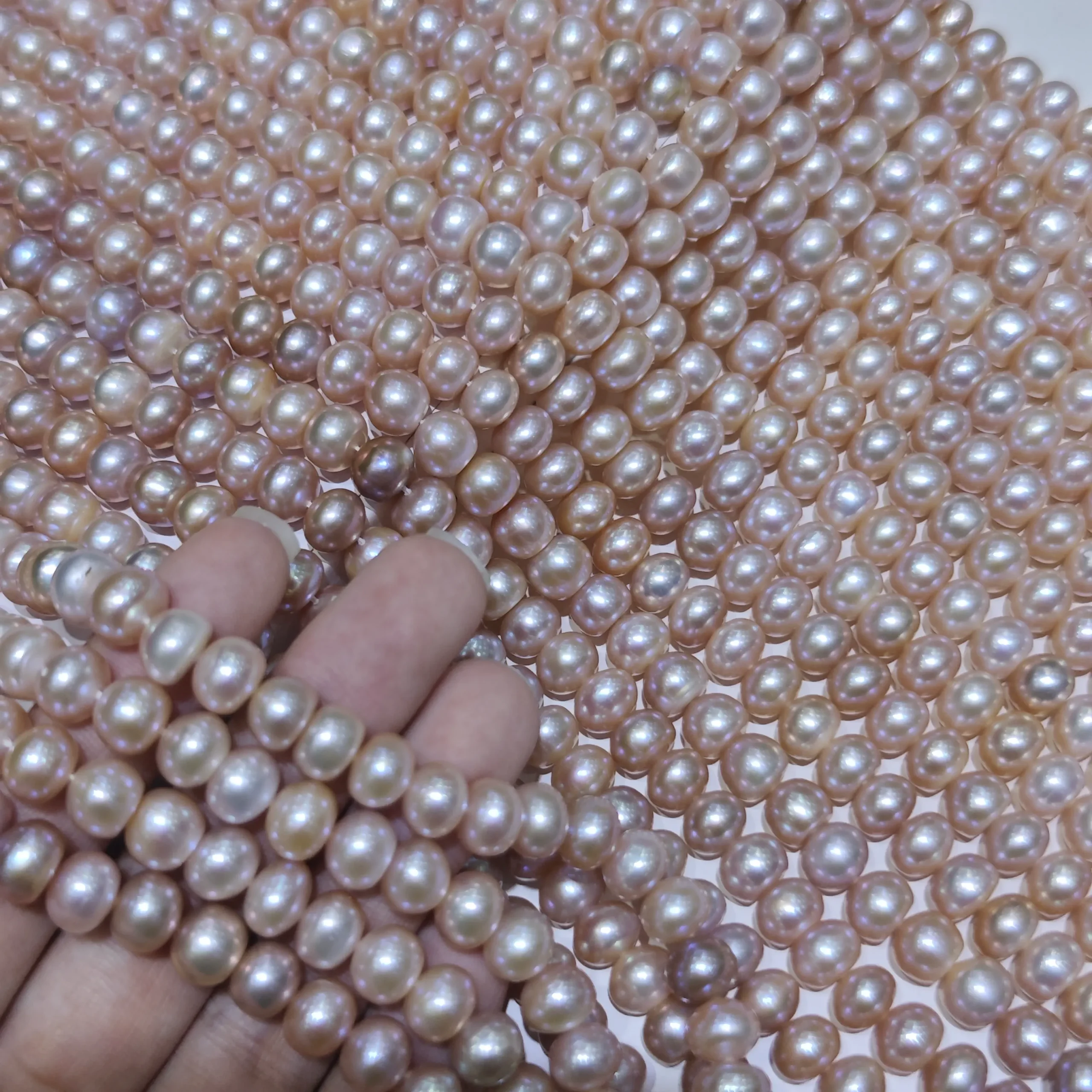 خيط لؤلؤ مياه عذبة بحجم 8-9 مم، شكل زر برتقالي/بنفسجي، درجة AAA، طول 16 بوصة