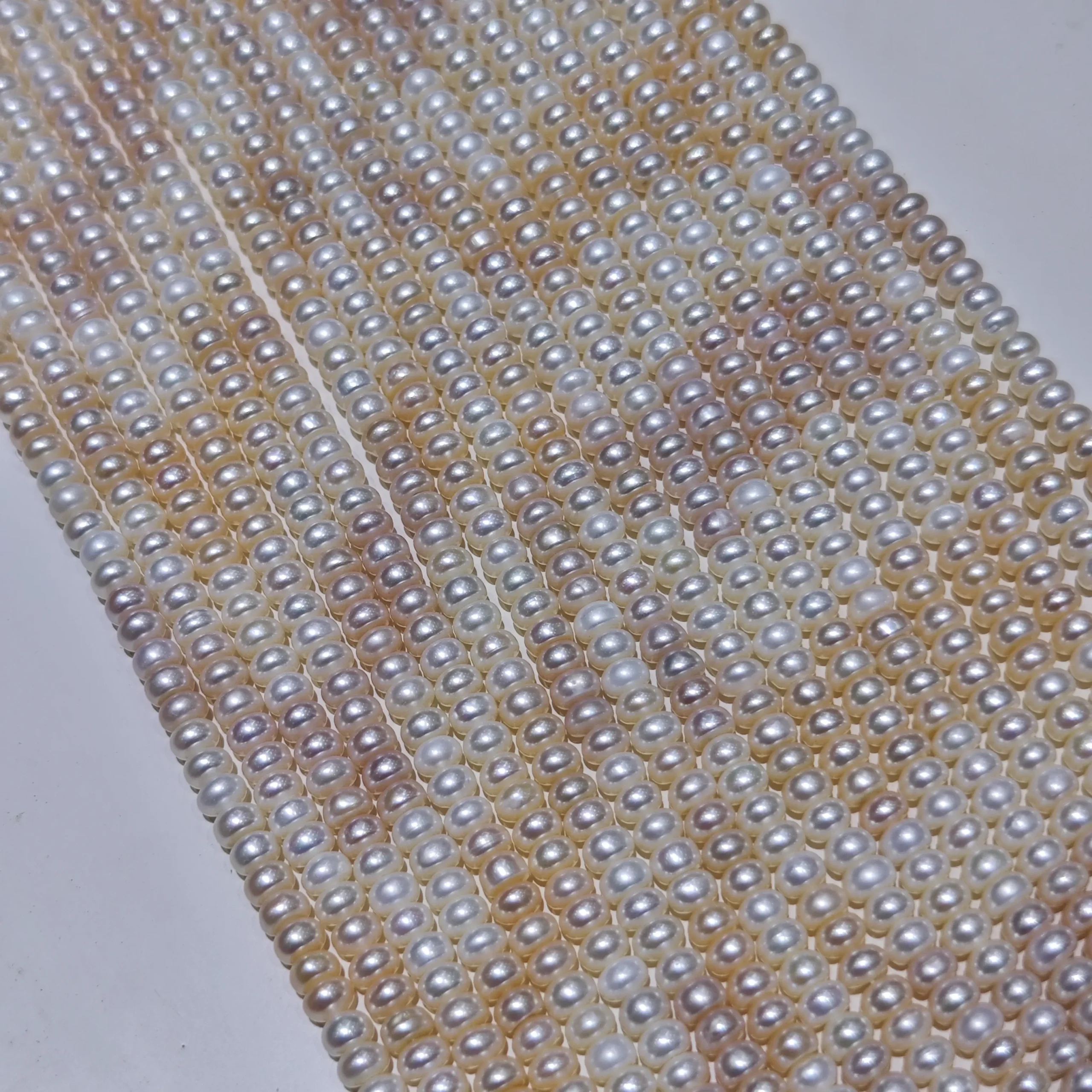 Este hilo mayorista de 16 pulgadas enlaza más de cincuenta perlas de botón, de 6 a 7 mm cada una, en una paleta predefinida de tonos suaves pastel—rosado, durazno, lavanda y blanco—cada perla de grado AAA para una piel limpia y brillo uniforme. La cúpula baja se ajusta perfectamente a la muñeca o al escote, por lo que un solo hilo se convierte en una pulsera de tenis arcoíris instantánea o en un collar de una sola fila alegre sin necesidad de combinar colores adicionales. Los tonos mezclados ocultan pequeñas variaciones superficiales, permitiendo que la calidad intermedia parezca premium para los clientes finales, mientras mantiene bajo el coste unitario.