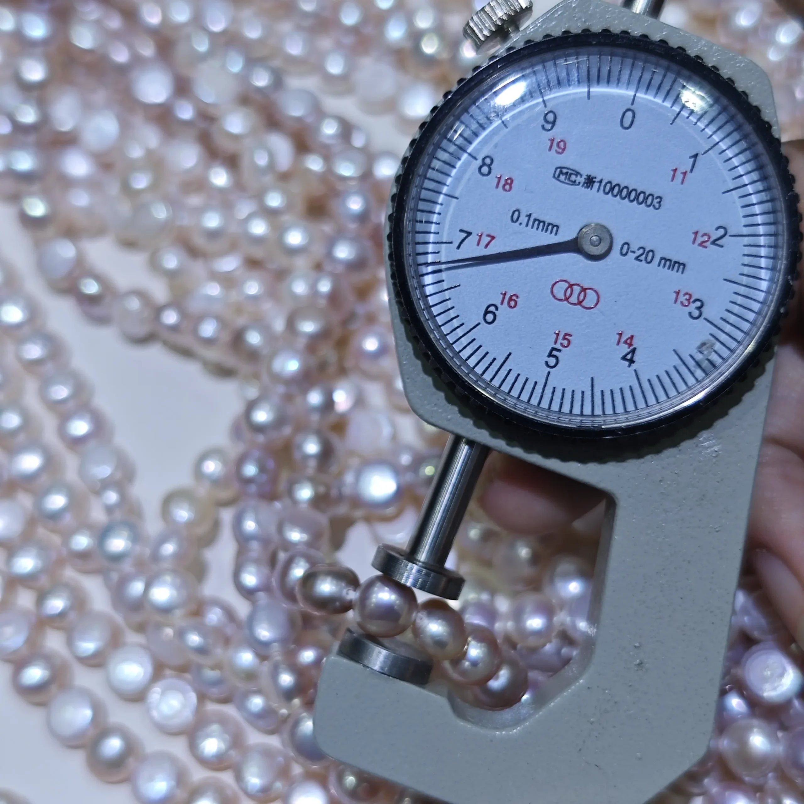 Este hilo mayorista de 16 pulgadas enlaza más de cincuenta perlas de botón, de 6 a 7 mm cada una, en tonos no tratados de crema suave, champagne y rubor—cada cuenta de grado AAA para una piel limpia y un lustre uniforme. La cúpula baja se ajusta perfectamente a la muñeca o al escote, por lo que un solo hilo se convierte en una pulsera de una sola fila con un tono terroso o en un collar de princesa de tonos cálidos que combina con componentes de oro relleno o plata de ley sin necesidad de clasificación adicional de color. Los tonos naturales ocultan pequeñas variaciones superficiales, permitiendo que la calidad de nivel medio parezca premium para los clientes finales mientras mantiene bajos los costos.