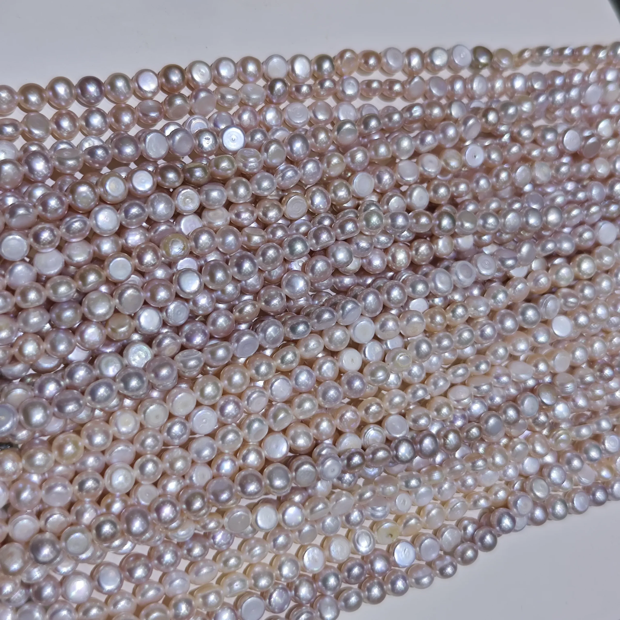 Rollo de perlas de agua dulce de color natural en forma de botón de 6-7mm, grado AAA, 16 pulgadas